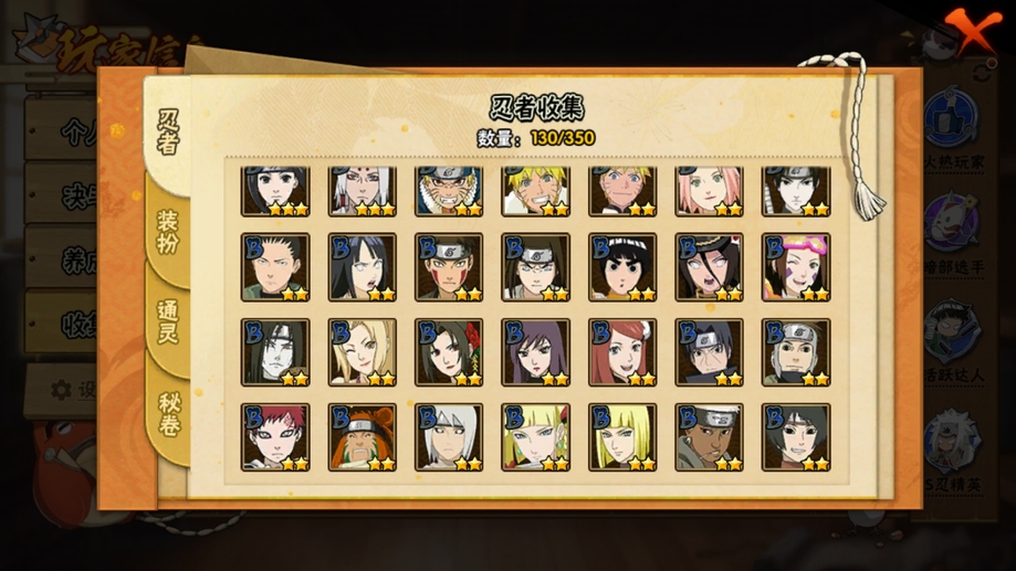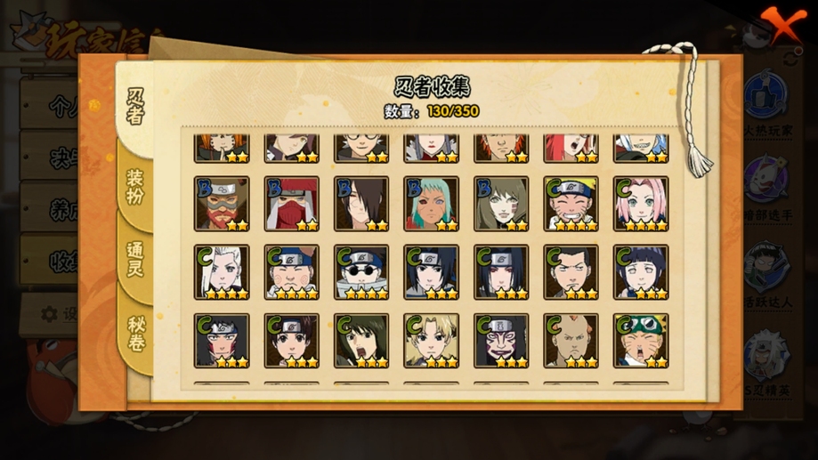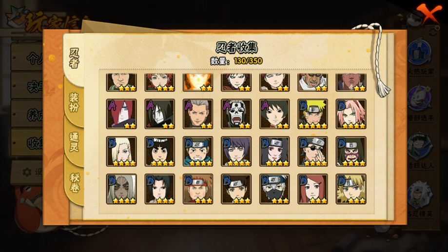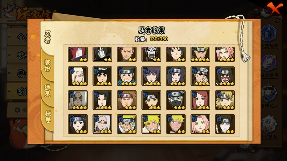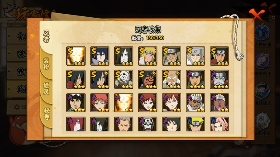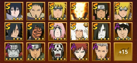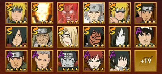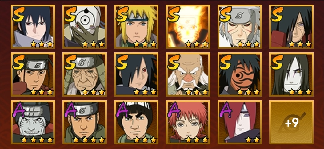創立斑,飛段,穢土扉間,阿斯瑪,鬼鮫,蠍,忍戰大野木,永恆萬花筒佐助,青年長門,紅夜帶土,穢土斑,忍戰我愛羅,白面具,死司飛段,青年艾,穢土日斬,大蛇丸,曉大蛇丸,奇拉比,柱間,凱,九尾鳴人,九喇嘛鳴人,博人傳黑土,水門,疾風傳我愛羅