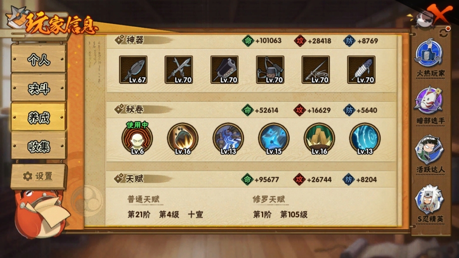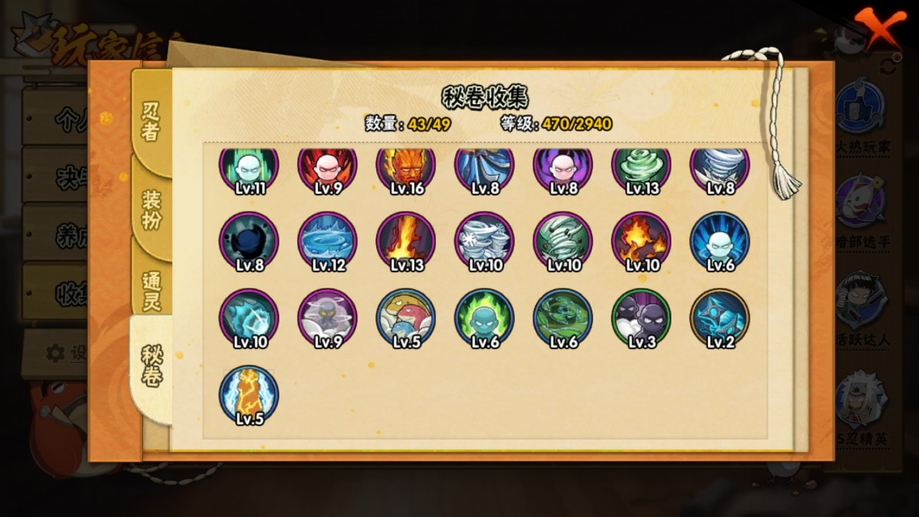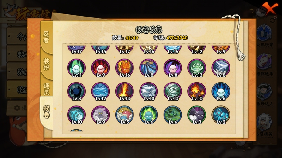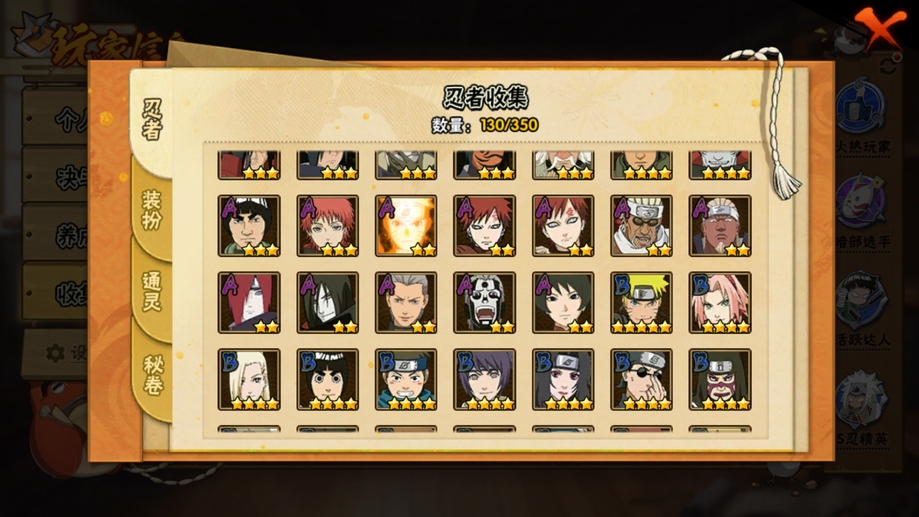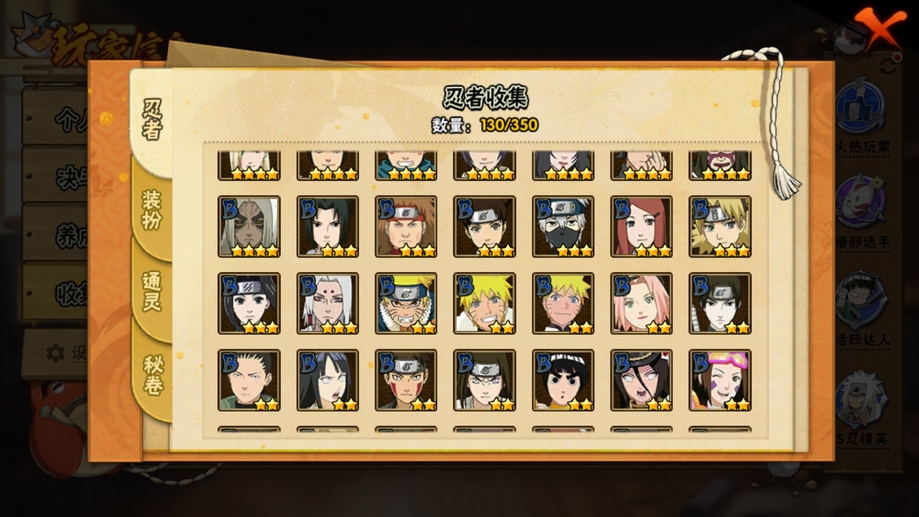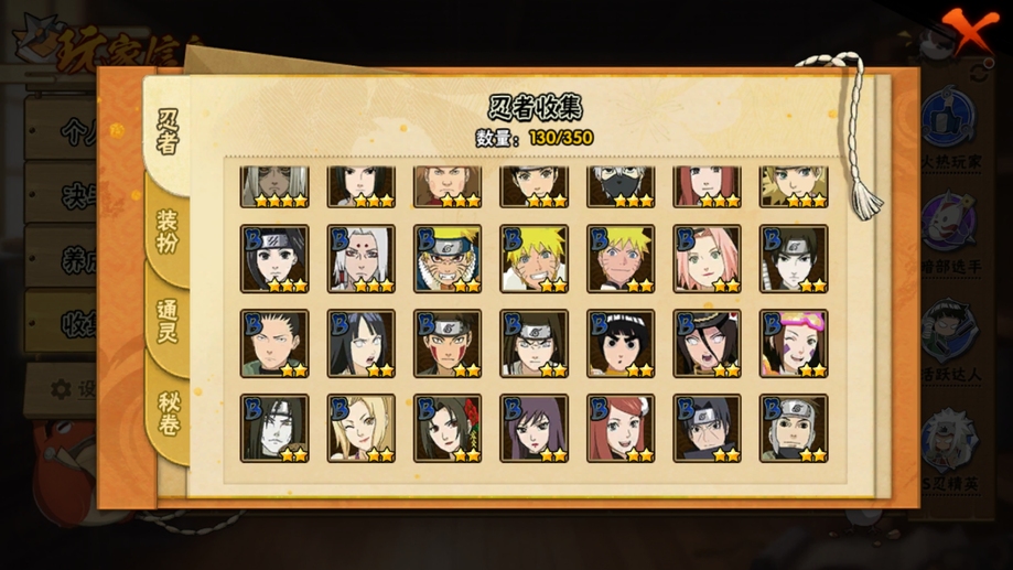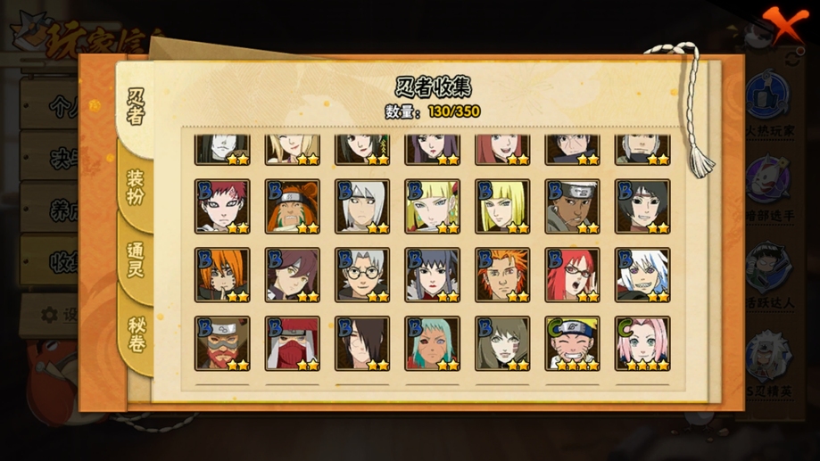 創立斑,飛段,穢土扉間,阿斯瑪,鬼鮫,蠍,忍戰大野木,永恆萬花筒佐助,青年長門,紅夜帶土,穢土斑,忍戰我愛羅,白面具,死司飛段,青年艾,穢土日斬,大蛇丸,曉大蛇丸,奇拉比,柱間,凱,九尾鳴人,九喇嘛鳴人,博人傳黑土,水門,疾風傳我愛羅