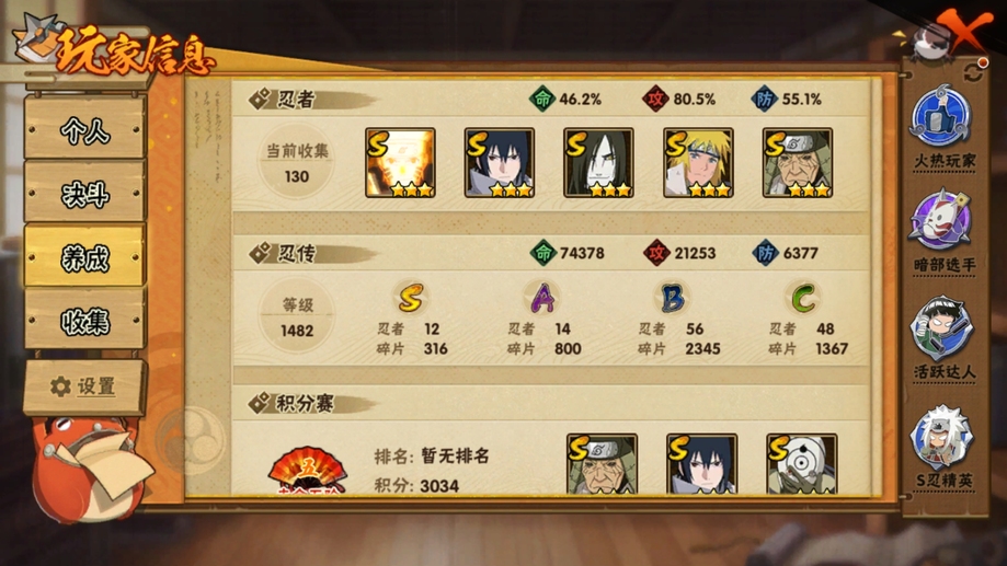 198忍法帖已買,創立柱間70片,看清楚忍者喔全是高強度的s忍。號上還有80抽,600點券和20多天左右月卡。可二次,很多遊戲都有賬號