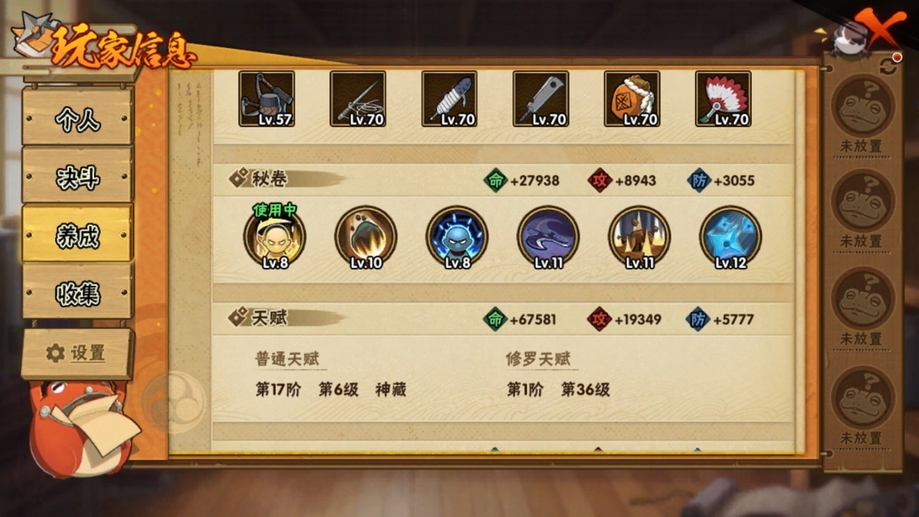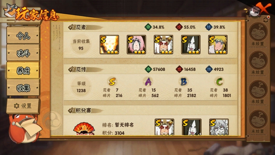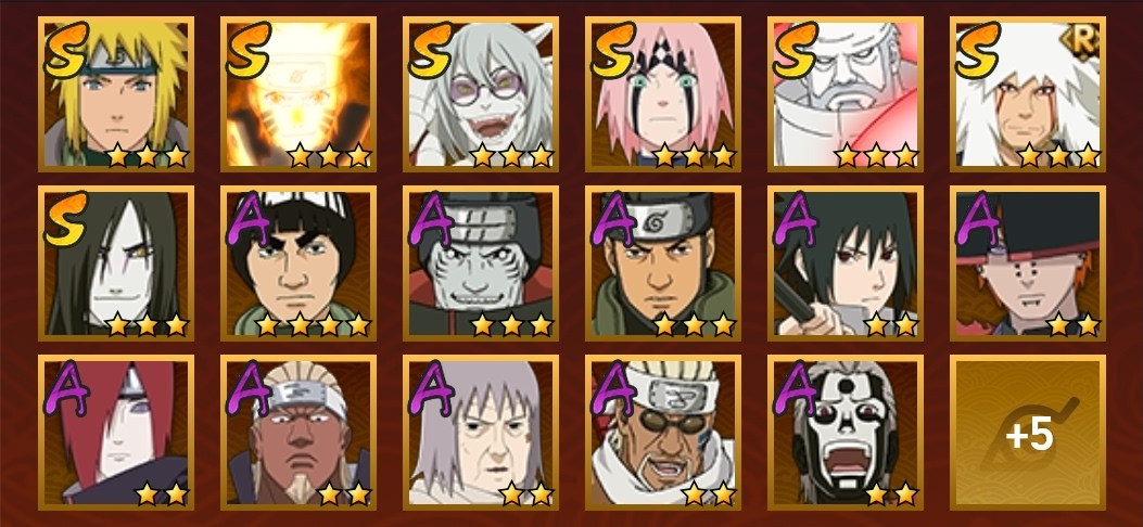 飛段,舞之豪傑自來也,大蛇丸,奇拉比,仙人兜,阿斯瑪,鼬,鬼鮫,金式,須佐佐助,蠍,凱,青年長門,忍戰櫻,漂泊六道,九喇嘛鳴人,水門,迪達拉,疾風傳我愛羅,死司飛段,近松十人衛千代,青年艾