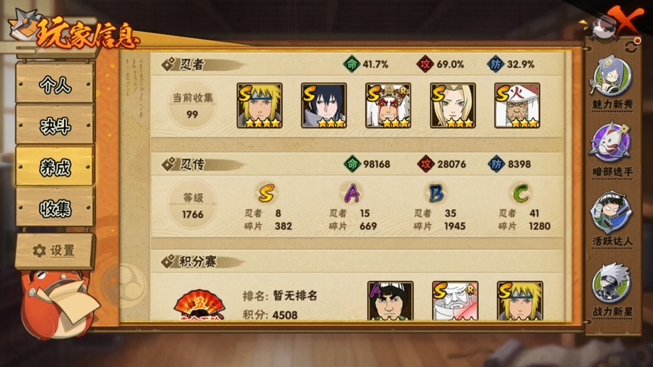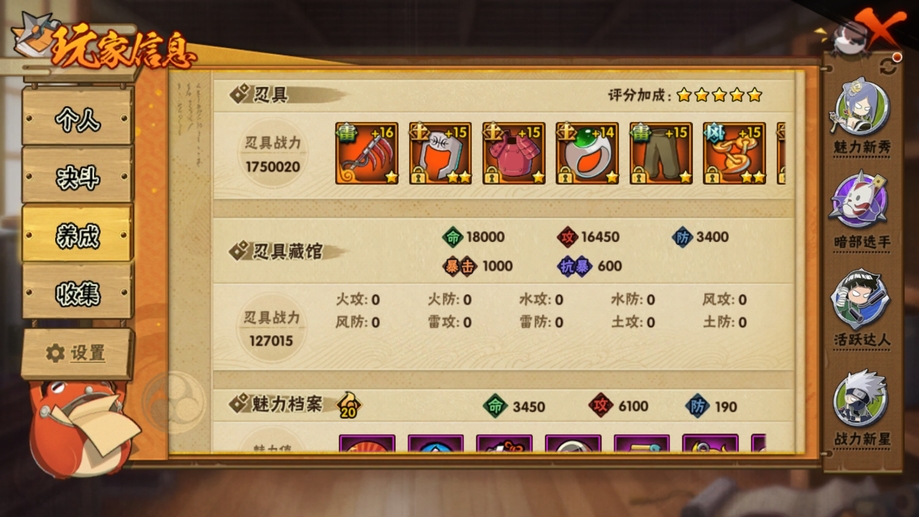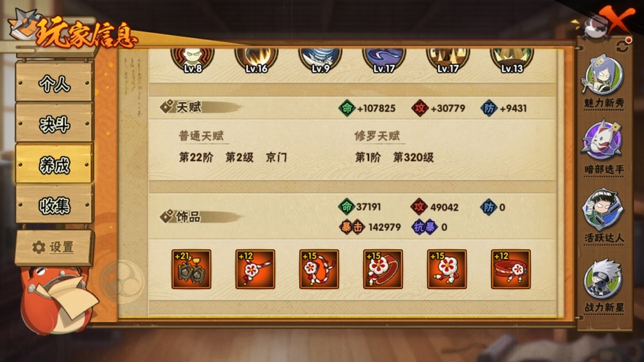 忍戰寧次,舞之豪傑自來也,鮫肌融合鬼鮫,七夕阿斯瑪,阿斯瑪,鬼鮫,鼬,金式,忍戰丁次,蠍,三代火影,凱,永恆萬花筒佐助,綱手,忍戰凱,水門,新春小南,紅夜帶土,迪達拉,百機蠍,天道超,疾風傳我愛羅,死司飛段