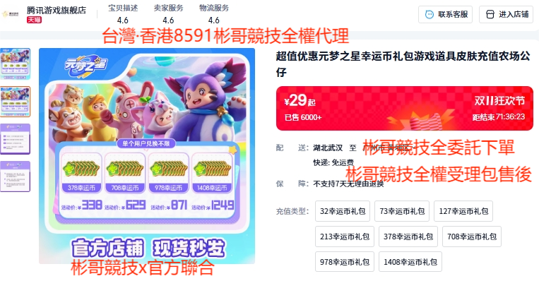 自2024/11/9起本店聯合騰訊遊戲旗艦店 狂歡節 授權代銷全部商品