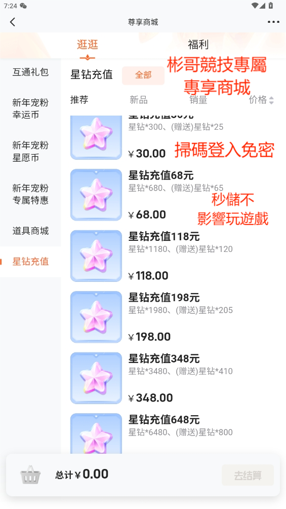 遊戲商城秒到星鑽專區
