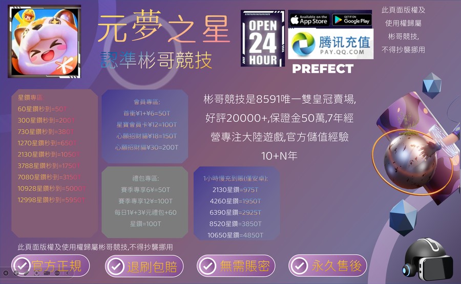 代儲【官網·官方旗艦店秒發免密儲值】 ⭐️彬哥競技⭐️陸服元夢之星儲值,聯合騰訊旗艦店 狂歡節,無需賬號密碼秒儲