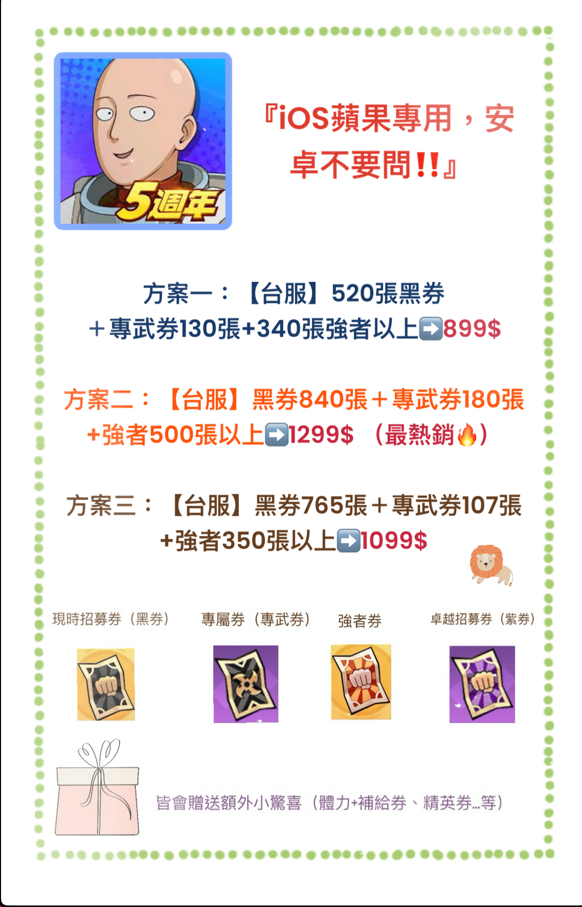 iOS專用、沒辦法指定區服、其餘資源隨機