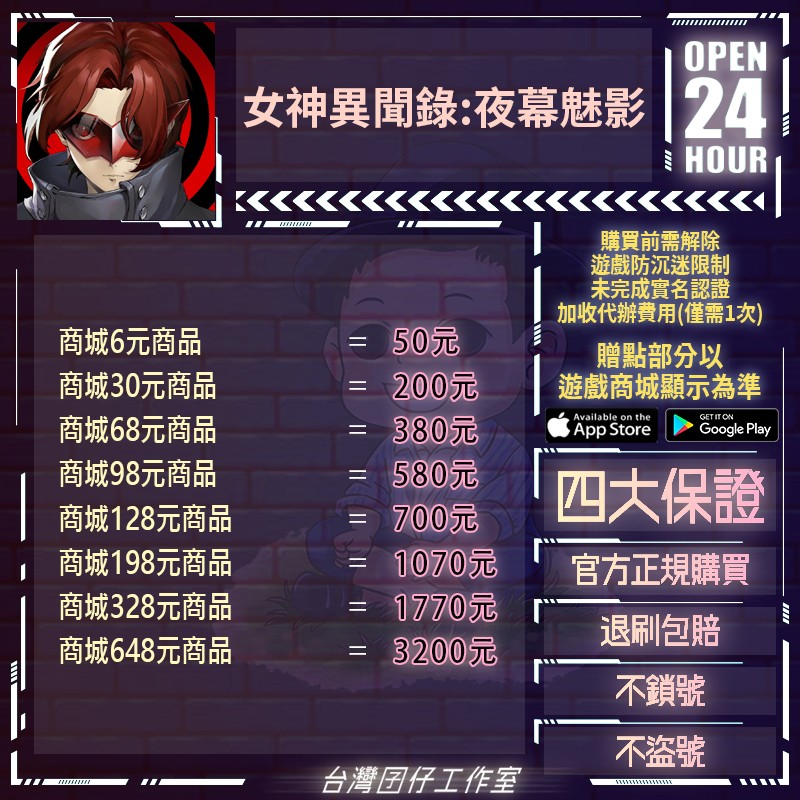 代儲【任何禮包商品都可私詢24H客服~】 🏆24H客服🏆現貨秒出🔥台灣囝仔🔥女神異聞錄:夜幕魅陸服🔥20萬保證金