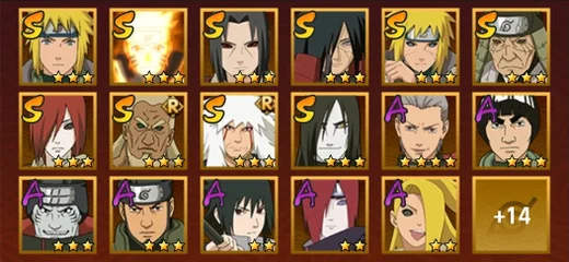 飛段,舞之豪傑自來也,阿斯瑪,鬼鮫,蠍,三代火影,斗篷兜,博人傳木葉丸,忍戰奇拉比,永恆萬花筒佐助,青年長門,綱手,迪達拉,白面具,死司飛段,止水,青年艾,萬花筒卡卡西,大蛇丸,六代水影,仙人鳴人,鼬,穢土柱間,穢土阿斯瑪,忍戰丁次,柱間,凱,青年水門,九喇嘛鳴人,水門,疾風傳我愛羅,近松十人衛千代