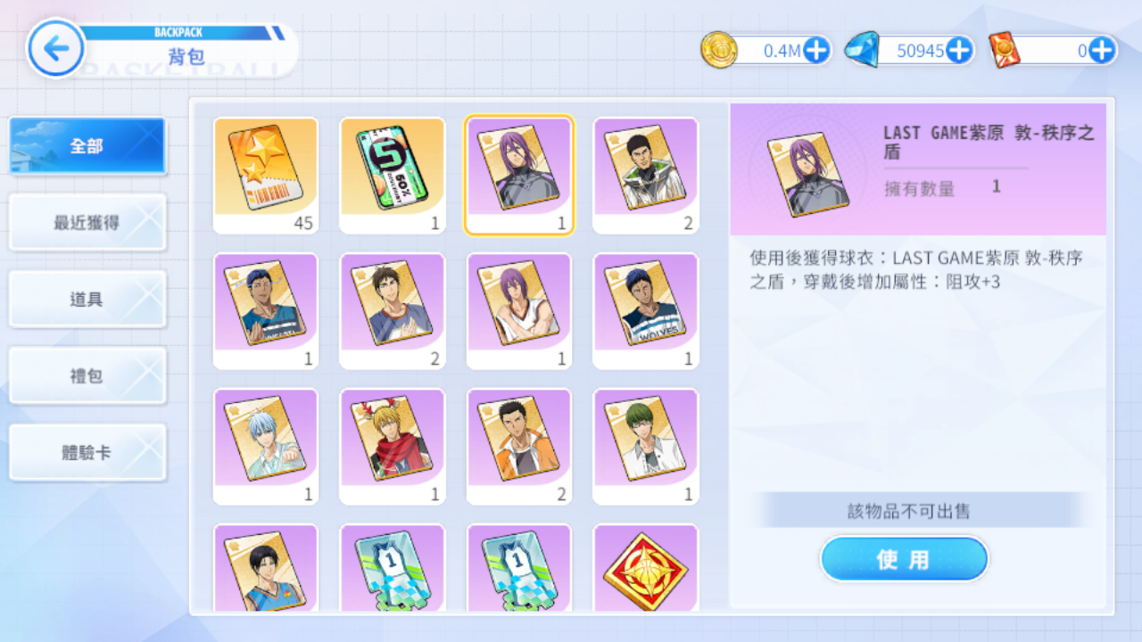(四)LG紫原-秩序之盾/ZONE青峰-灰狼球衣/火神大我-NBA公牛/青峰大輝-NBA灰狼/紫原-NBA太陽/高尾和成-NBA雷霆/火神大我-熱血男孩/大坪-秀德之壁/黑子哲也-夏日襯杉/黑子哲也-回歸初心/黑子哲也-獨行俠/綠間-悠閒時光/木吉鐵平-球場動能/黃瀨涼太-冬季舞台/岡村建一橙色風暴