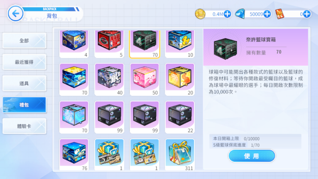 (八)NBA自選球場包、金塊球場、湖人球場、溜馬球場、夏日沙灘球場、誠凜體育館、勇士球場、聖誕節球場、二週年球場自選箱、公園球場(夜晚)、灰狼球場