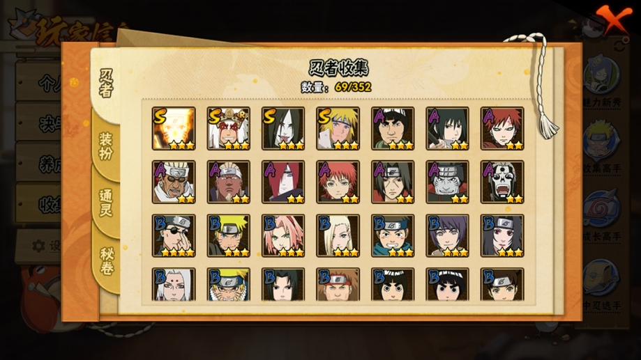 舞之豪傑自來也,大蛇丸,奇拉比,鼬,鬼鮫,須佐佐助,蠍,凱,青年長門,九喇嘛鳴人,水門,疾風傳我愛羅,死司飛段,青年艾
