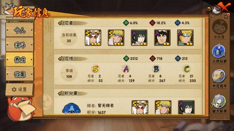小號骨架加青水低價出,仙人鳴人31片,寧次過半,王者段位鑽石多個史詩造型