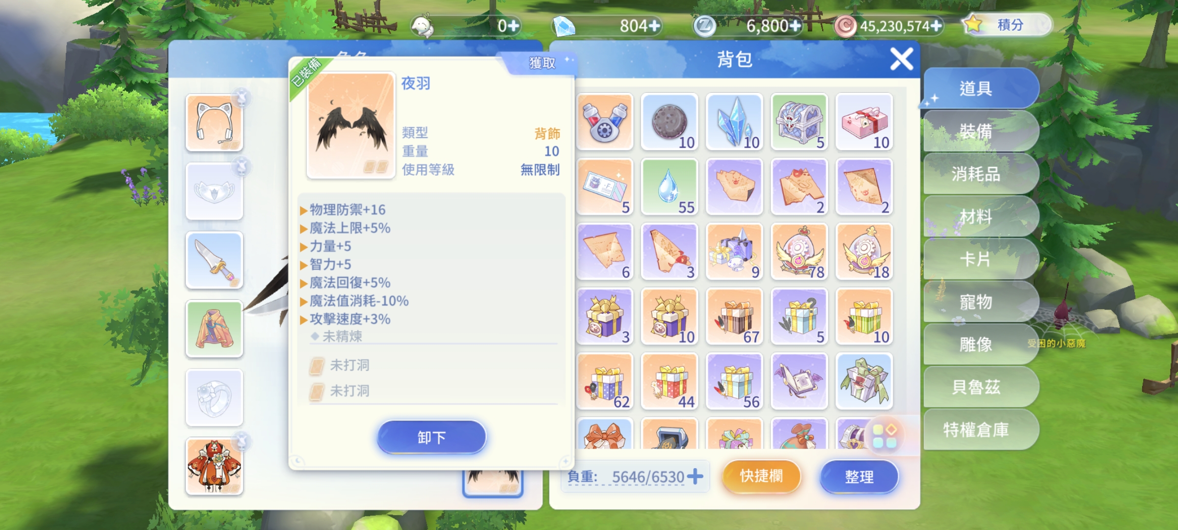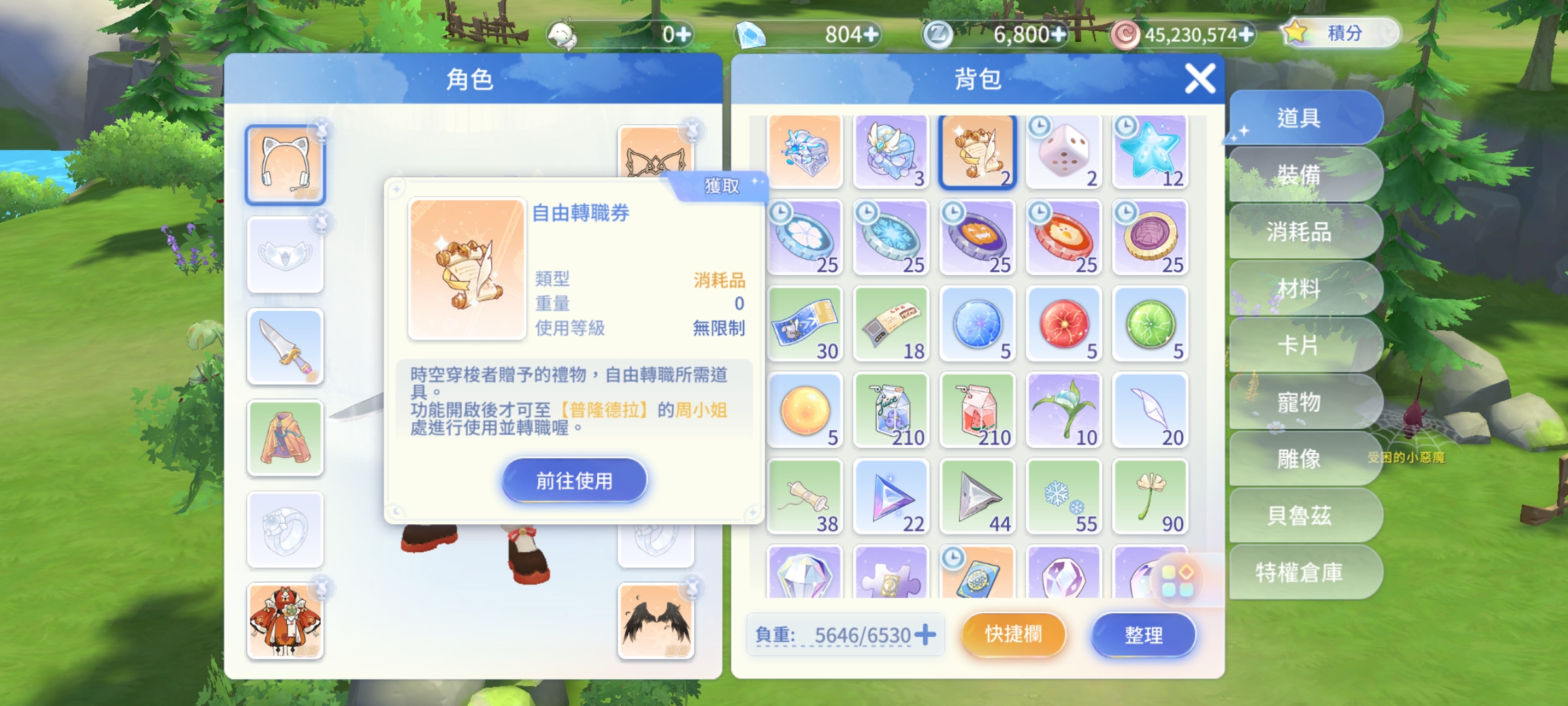 旅夢人1/女盜賊25等/糯糯咕嚕+夜羽翅膀+貓爪耳機+自由轉職券+鬼武士+該隱+杜尼爾+紅寵+改名卡/再六抽必出傳說寵物/綁定全新google整組給買家