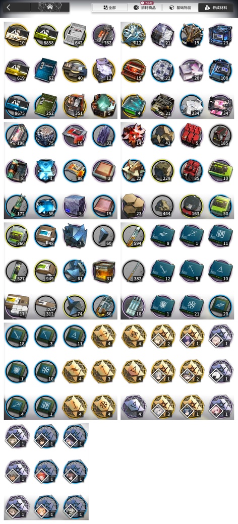 全卡328新出的幹員已抽,320源石,還有很多資源,技能能用到的都精了,還有很多石頭,真正的全滿號