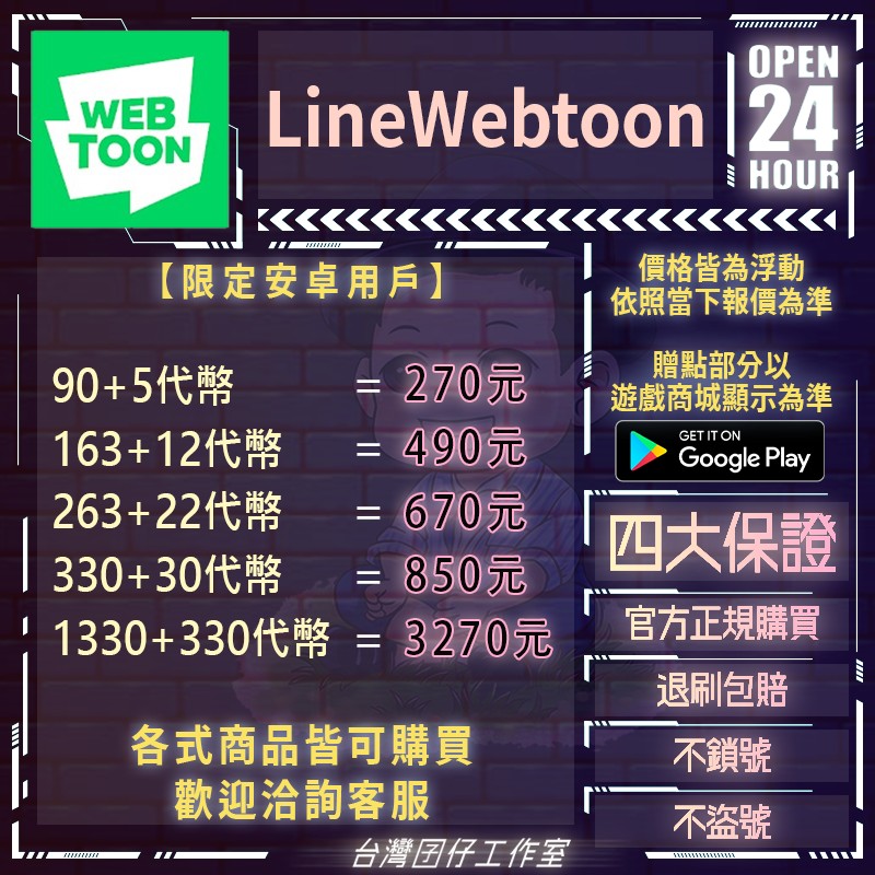 代儲【90+5代幣=270元】 🏆24H客服🏆LINE WEBTOON🔥現貨秒出🔥台灣囝仔🔥退刷包賠