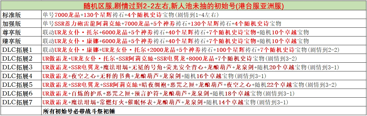 隨機區服,劇情過到2-2新人池未抽的初始號(港台服國際服)
