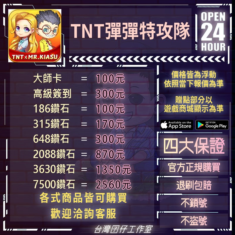 代儲【186鑽石=100元】 🏆24H客服🏆TNT彈彈特攻隊🔥現貨秒出🔥台灣囝仔🔥退刷包賠🔥