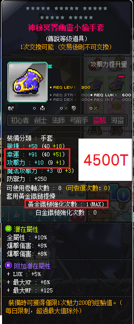 道具 【神秘冥界幽靈小偷手套】 ✿強哥唷 - 雙爆10%全屬.附加稀有.神秘手套.盜賊.雙爆10%全屬.附加稀有