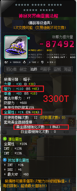 道具 【神秘】 ✿強哥唷 - 36%智附加3%.神秘法師帽/36%智附加3%.神秘魔法帽/神秘帽