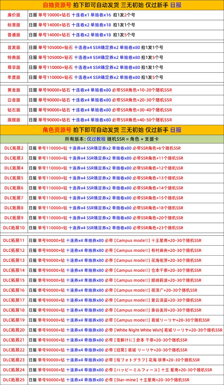 遊戲帳號內容已清楚打出來 沒打出來的皆為隨機附送 不要自己亂加東西 資源 再說帳號上怎沒有 後續出現問題 一律以賣家公布為主 介意勿買