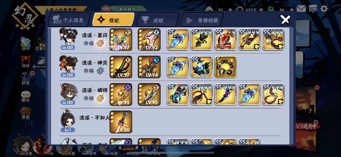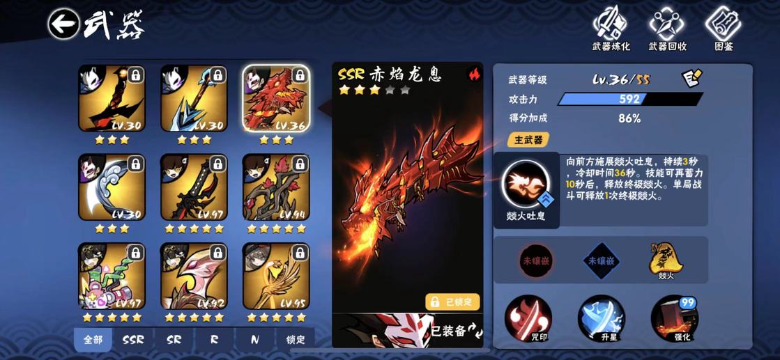 2個三勾忍宗,2個寒冰,主流武器都有,還有很多咒印和,有多的忍抄可以合成,考研沒時間玩了,可刀