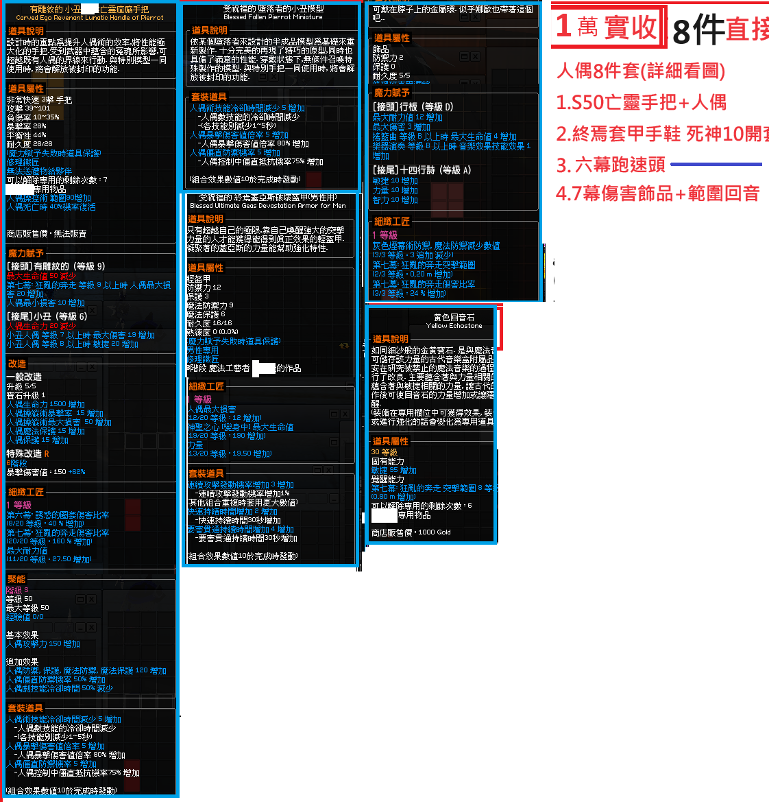 道具 人偶8件套/G50S50亡靈瘋癲手把回音飾品終焉破壞套