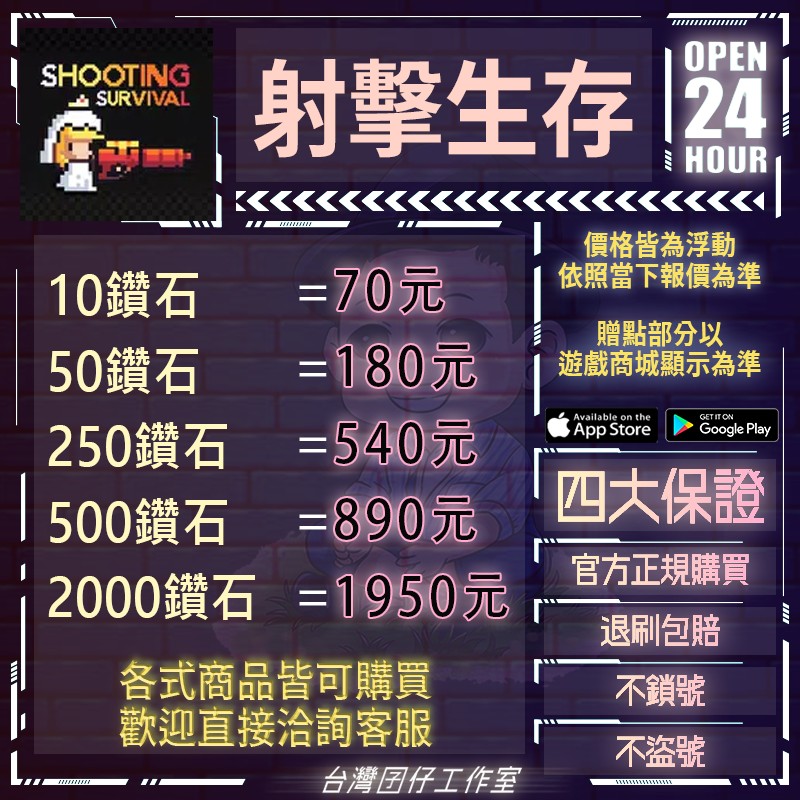 代儲【10鑽石】 24H客服🏆射擊生存代儲🔥現貨秒出🔥台灣囝仔🔥退刷包賠🔥