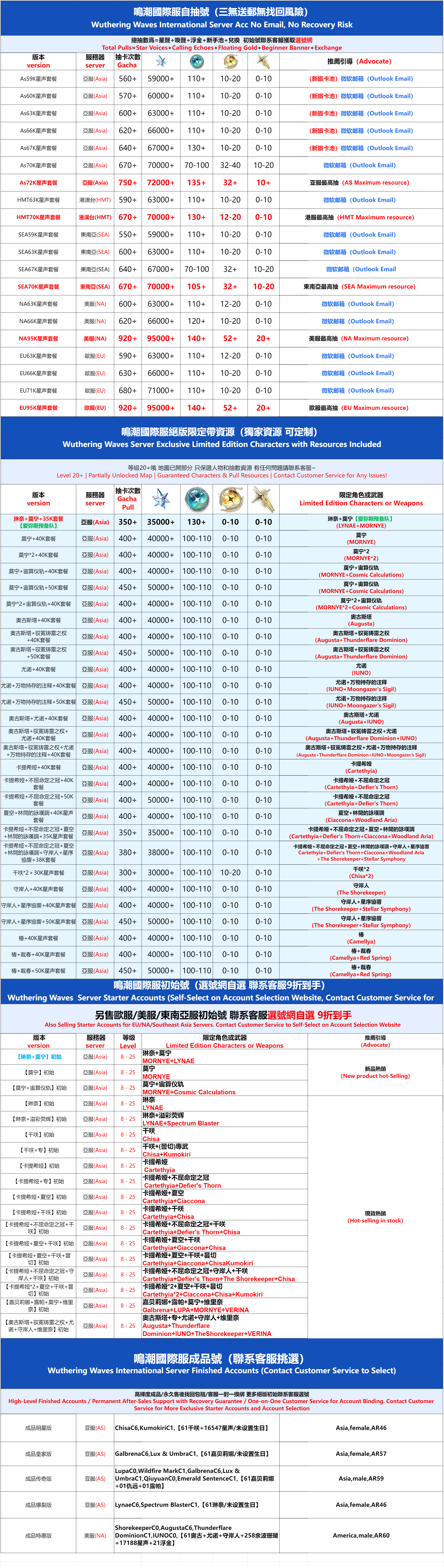 全 8591 首家 鳴潮國際服初始號自抽號亞服自選石頭號歐美服國服官卡卡羅吟霖鑑心維裡奈限定專武莫特斐白芷港台東南亞組合
