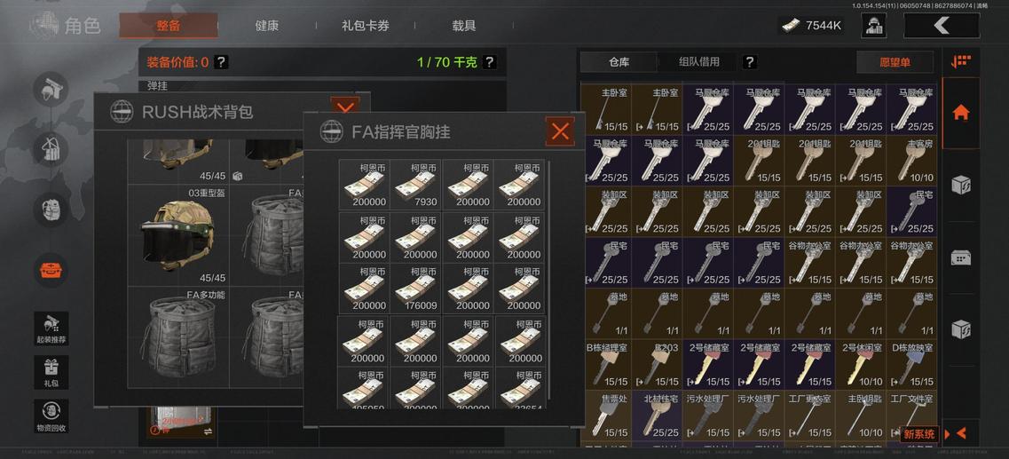 限定瑞兔折刀,秋日面罩,手冊滿級 真實之眼fal 各種槍械皮 各種彈夾皮 滿改槍械 完美配件 各種鑰匙 主客房 黃卡 熱成像4個 大金8個 小金無數 科恩幣7500k 倉庫價值30m 絕品歐皇號 可二次