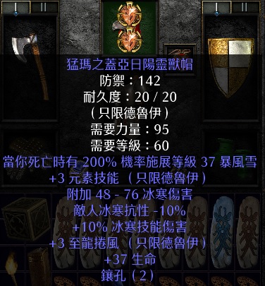 頭部:蓋亞頭(+3元素3龍捲風+37命鑲55死冰寶*2)-250+40