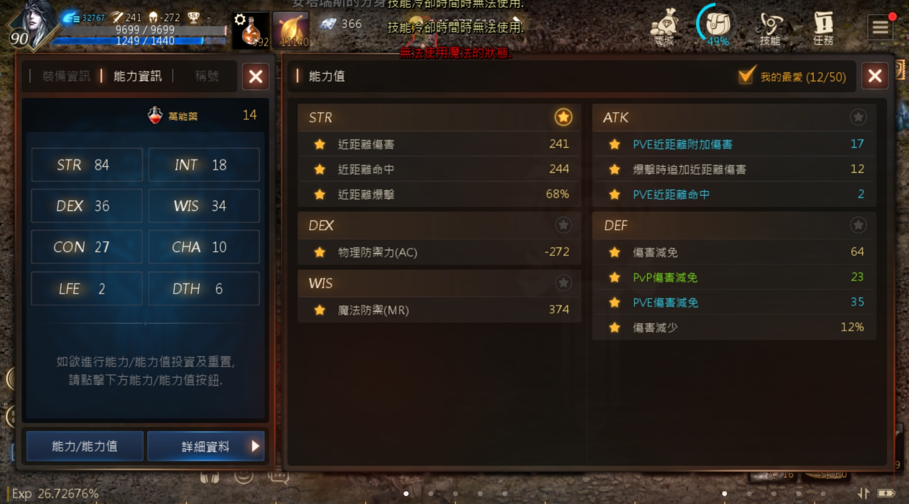 攻擊裝 進傷241 防禦272 抗魔374 減免64+23+35