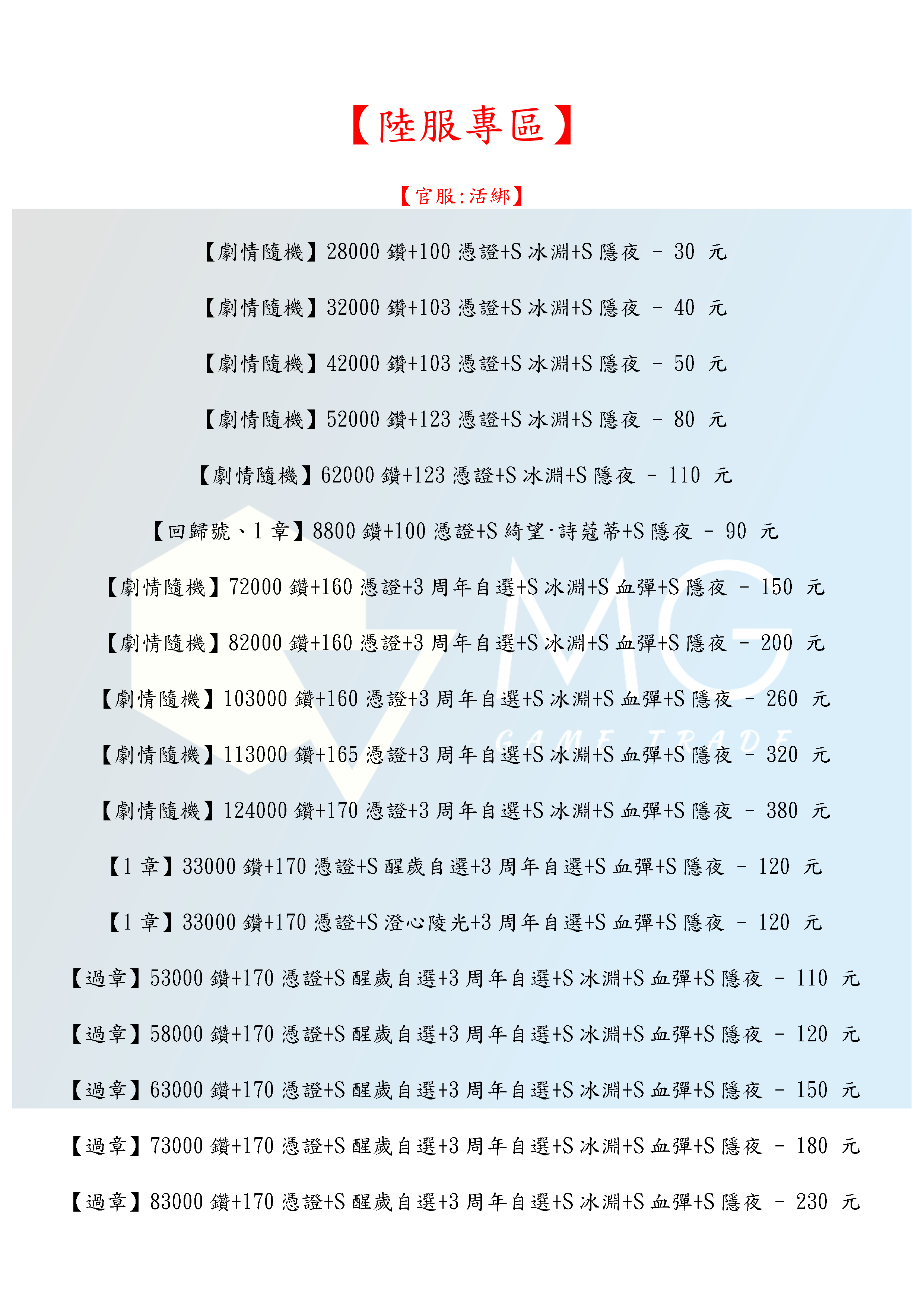 帳號 【初始號】 【MG數碼】 台服 日服 國際服 陸服 多石號 初始號 自抽號 自選號 自選組合