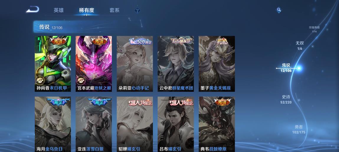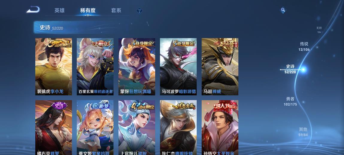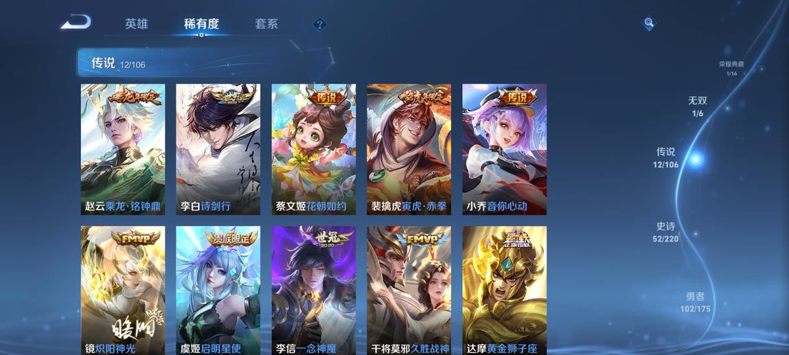 V8【1無雙1典藏】227造型-117英雄 【無雙傳說】 李白-碎月劍心 【典藏造型】 李白-鳴劍·曳影 【12傳說造型】 趙雲-乘龍·銘鐘鼎 裴擒虎-寅虎·赤拳 李白-詩劍行 蔡文姬-花朝如約 鏡-熾陽神光 李信-一念神魔 小喬-音你心動 干將莫邪-久勝戰神 達摩-黃金獅子座 孫尚香-末日機甲 宮本武藏-地獄之眼 虞姬-啟明星使 編號ky1339