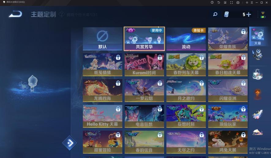 宮本武藏-驚梅引,曜-雲鷹飛將,孫尚香-末日機甲,小喬-音你心動,西施-游龍清影,花木蘭-冠軍飛將,貂蟬-仲夏夜之夢,東皇太一-灼幽烈陽,武則天-海洋之心,李信-一念神魔,孫悟空-地獄火,瀾-電玩·雷克斯,狄仁傑-超時空戰士,夢奇-胖達榮榮,貂蟬-貓影幻舞,趙雲-淬星耀世,后羿-黃金射手座,鏡-熾陽神光,劉備-時之戀人,王昭君-乞巧織情,周瑜-音你心動,虞姬-雲霓雀翎,宮本武藏-地獄之眼,鎧-絳天戰甲,呂布-怒海麟威