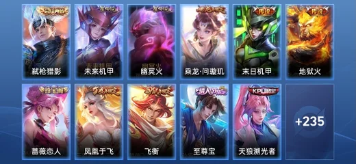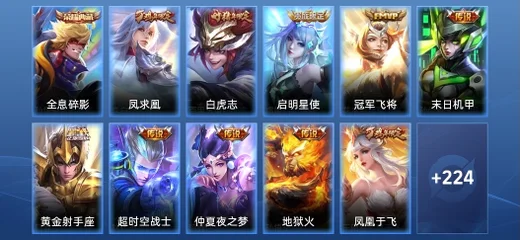 李元芳-特種部隊,蔡文姬-薔薇王座,花木蘭-兔女郎,王昭君-偶像歌手,嬴政-暗夜貴公子,魯班大師-歸虛夢演,劉備-潮玩造夢師,趙雲-白執事,李元芳-逐浪之夏,裴擒虎-街頭旋風,阿軻-愛心護理,老夫子-潮流仙人,豬八戒-潮玩探月行,劉禪-喚靈魔甲,貂蟬-異域舞娘,弈星-踏雪尋梅,沈夢溪-棒球奇才,大喬-貓狗日記,李白-範海辛,阿古朵-頑趣,露娜-瓷語鑑心,花木蘭-水晶獵龍者,露娜-紫霞仙子,諸葛亮-黃金分割率,西施-歸虛夢演,元歌-午夜歌劇院,劉備-萬事如意,百里守約-特工魅影,王昭君-幻想奇妙夜,魯班七號-福祿兄弟,趙雲-忍·炎影,妲己-女僕咖啡,司馬懿-暗淵魔法,桑啟-畫中遊,孫臏-天使之翼,鬼谷子-阿摩司公爵,廉頗-地獄巖魂,王昭君-精靈公主,上官婉兒-修竹墨客,孫臏-歸虛夢演,程咬金-無雙福將,周瑜-海軍大將,鬼谷子-幻樂之宴,蘭陵王-暗隱獵獸者,雲中君-荷魯斯之眼,楊玉環-霓裳曲,韓信-街頭霸王,甄姬-冰雪圓舞曲,程咬金-功夫廚神,馬超-倖存者,亞連-破局者,鍾無豔-聚星閃耀,阿古朵-熊喵少女,盾山-極冰防禦線,海月-王牌新星,張良-古海尋蹤,艾琳-流音漫舞,狂鐵-特工戰影,鎧-曙光守護者,虞姬-加勒比小姐,羋月-紅桃皇后,哪吒-熱血海灘,老夫子-功夫老勺,李元芳-妄想特派,亞瑟-心靈戰警,豬八戒-年年有餘,夢奇-美夢成真,米萊狄-精準探案法,狂鐵-命運角鬥場,伽羅-花見巫女,劉禪-秘密基地,劉禪-電玩·爆裂旋風,東皇太一-東海龍王,姬小滿-零食大作戰,黃忠-芝加哥教父,鏡-冰刃幻境,典韋-黃金武士,公孫離-花間舞,萊西奧-西部遊俠,太乙真人-勁辣紅鍋,花木蘭-劍舞者,明世隱-虹雲星官,露娜-緋紅之刃,大喬-守護之力,趙懷真-太極少年,蒙恬-蔚藍守將,雅典娜-戰爭女神,女媧-尼羅河女神,白起-樂園追獵者,沈夢溪-鯊炮海盜貓,曹操-幽靈船長,劉禪-天才門將,孫策-貓狗日記,牛魔-牛運亨通,諸葛亮-掌控之力,海月-幻泉霧影,白起-星夜王子,劉備-紐約教父,孫悟空-西部大鏢客,司馬懿-魘語軍師,鍾無豔-海灘麗影,瀾-孤獵,諸葛亮-星航指揮官,關羽-龍騰萬里,劉邦-德古拉伯爵,狄仁傑-鷹眼統帥,蘇烈-堅韌之力,小喬-萬聖前夜,達摩-大發明家,扁鵲-化身博士,司空震-啟蟄,哪吒-次元突破,宮本武藏-鬼劍武藏,曜-歸虛夢演,蘇烈-愛與和平,雲纓-赤焰之纓,呂布-野性能量,鍾無豔-生化警戒,孫臏-未來旅行,高漸離-金屬狂潮,馬可波羅-潮玩牛仔,狄仁傑-錦衣衛,韓信-教廷特使,姜子牙-熾熱元素使,蒙恬-秩序獵龍將,蘭陵王-隱刃,太乙真人-圓桌騎士,曹操-超能戰警,百里玄策-威尼斯狂歡,墨子-金屬風暴,張飛-亂世虎臣,孫策-海之征途,白起-白色死神,妲己-紫羅蘭之誓,張良-一千零一夜,安琪拉-時之奇旅,盤古-創世神祝,蒙犽-歸虛夢演,典韋-鐵甲之心,盾山-圓桌騎士,張飛-五福同心,劉禪-英喵野望,魯班大師-乓乓大師,夏侯惇-戰爭騎士,李信-灼熱之刃,百里守約-絕影神槍,關羽-天啟騎士,鎧-龍域領主,后羿-精靈王,孫尚香-水果甜心,魯班七號-木偶奇遇記,趙雲-未來紀元,妲己-少女阿狸,妲己-魅力維加斯,亞瑟-死亡騎士