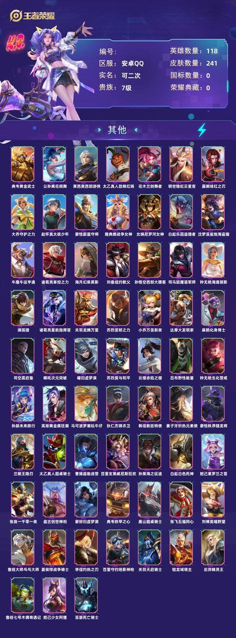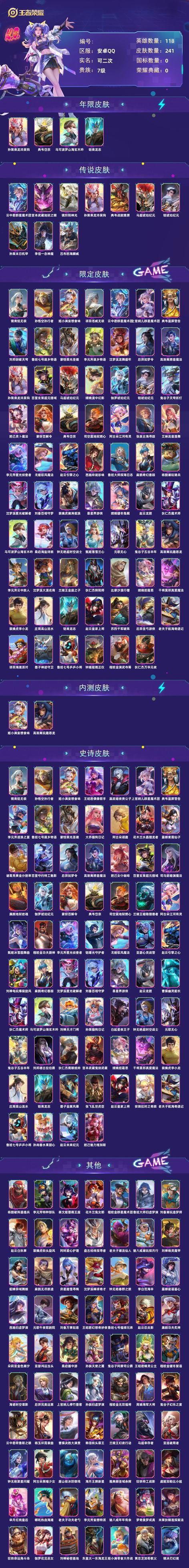 帳號 【991等】 V7 10傳說 67史詩 241造型 118英雄 無雙王者
