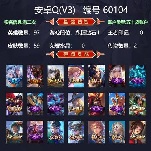 【DDT】安卓QQ374區59皮0水2傳說0無雙(可二次)V3!傳說造型:畫中仙干將莫邪,絳天戰甲鎧。限定造型:擒濤扼浪裴擒虎。史詩造型:鷹眼統帥狄仁傑,馭風魔法戈婭,玫瑰異探鏡,幽靈船長曹操,皇家上將趙雲,金屬風暴墨子,心靈戰警亞瑟,吟遊魔法明世隱,鬼劍武藏宮本武藏,乘風破浪夏侯惇,雲間偶戲元歌,火炮紳士黃忠,魅力維加斯妲己。