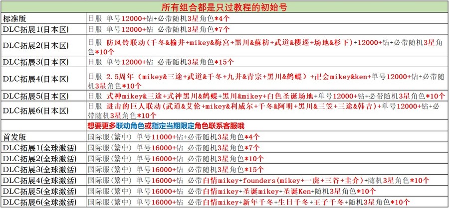 首發版為鑽石20w以上5個三星角色