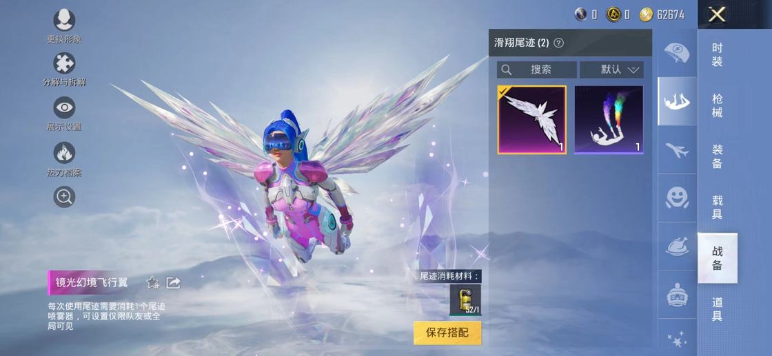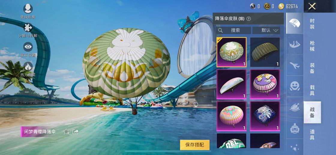 洛神天依降落傘,蓮影清波降落傘,心之戀語降落傘,閒夢青纓降落傘,夢幻火箭降落傘,鏡光幻境飛行翼