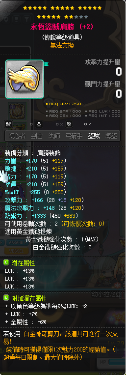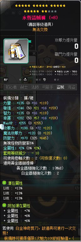 【永恆盜賊褲子,永恆盜賊肩膀】 永恆盜賊褲子39幸766全屬,永恆盜賊肩膀39幸+2,7幸,6全