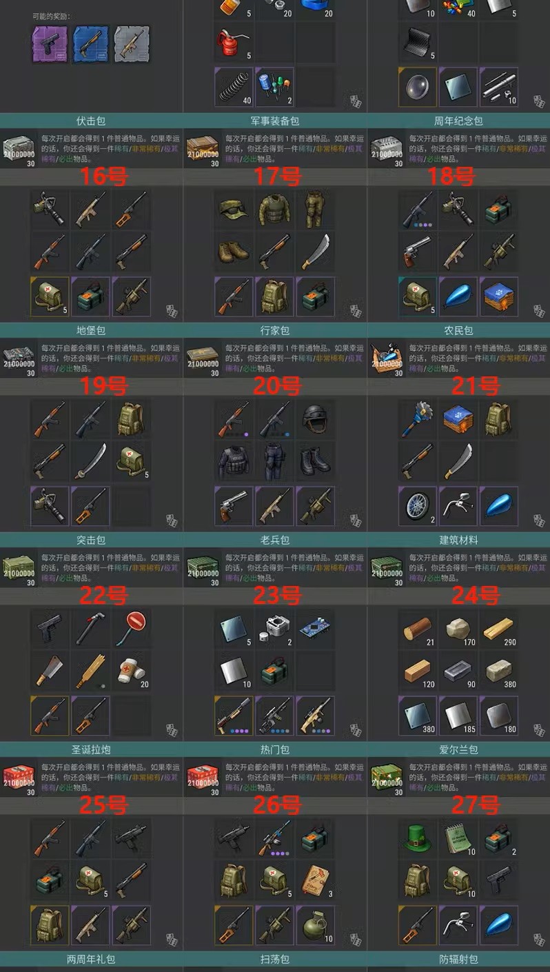 限稀有藍圖文件包+無限武器零件包+無限工廠零件包+無限伏擊包+無限防