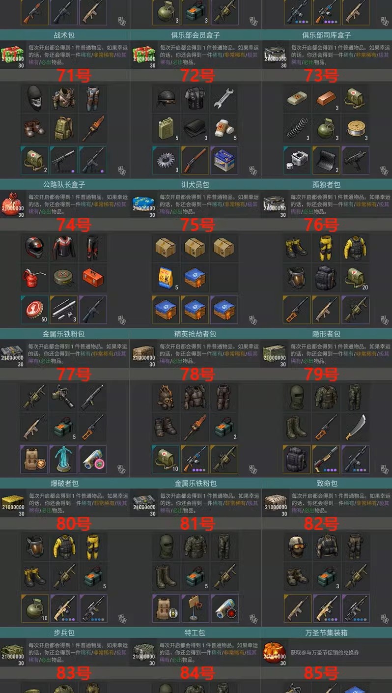 疫+靜音抄寫手+臨時BUF℉無限時間+25個75格保險箱+40個頂級自動砲台+40個砲台無限燃料+全部背包皮膚+全部內衣皮膚+全部套裝皮膚+全部摩托車皮