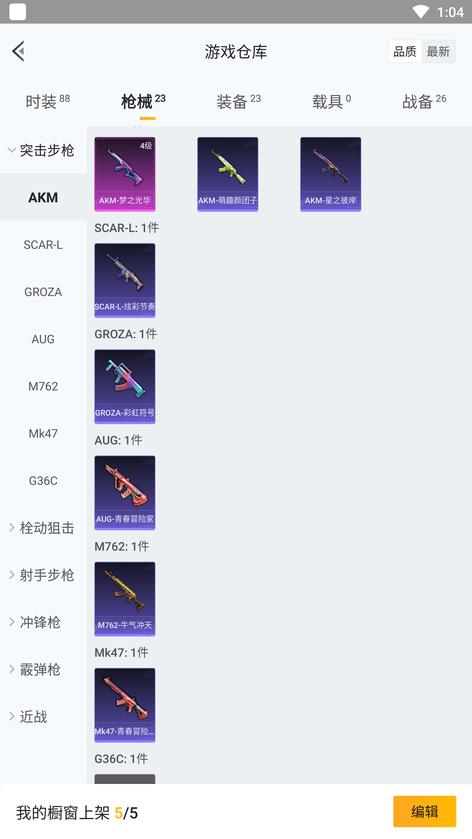 AKM-星之彼岸,Mk47-青春冒險家,AUG-青春冒險家,AKM-萌趣顏糰子,QBU-青春冒險家,VSS-碧影閃光,野牛-青春冒險家,Vector-暗夜玫瑰,MP5K-怪笑瘋兔,AKM-夢之光華