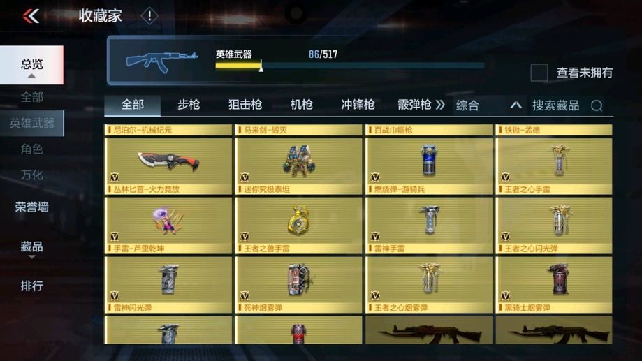 王者之心,王者之跡,王者之魂,王者之隱,王者之心閃光彈,王者之心手雷,王者之心煙霧彈,王者之獸手雷