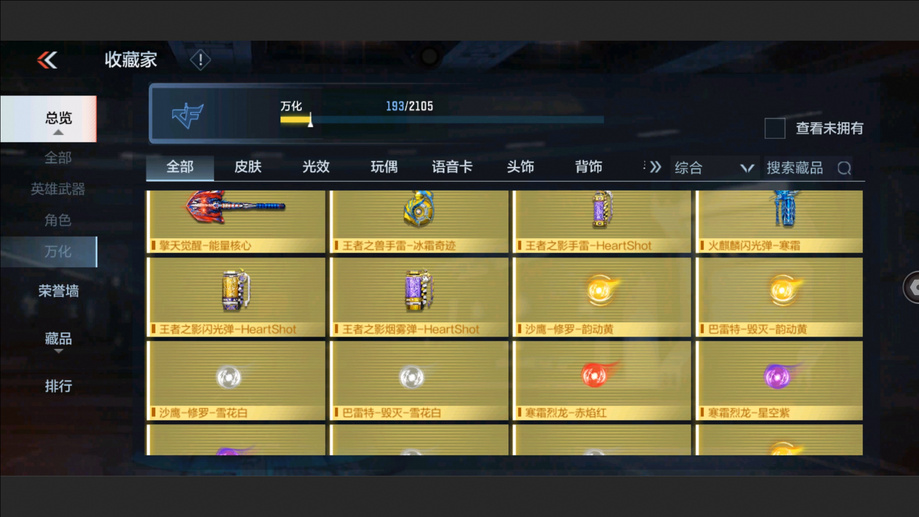 王者之魄,王者之戮,王者之怒,王者之隱,王者之影閃光彈,王者之影煙霧彈,王者之翼閃光彈,王者之翼煙霧彈,王者之聖煙霧彈