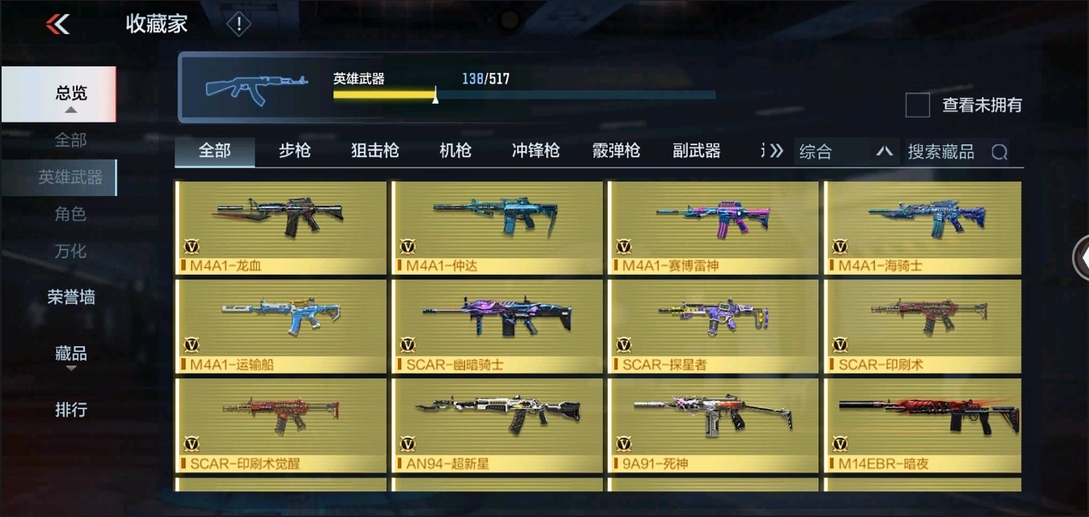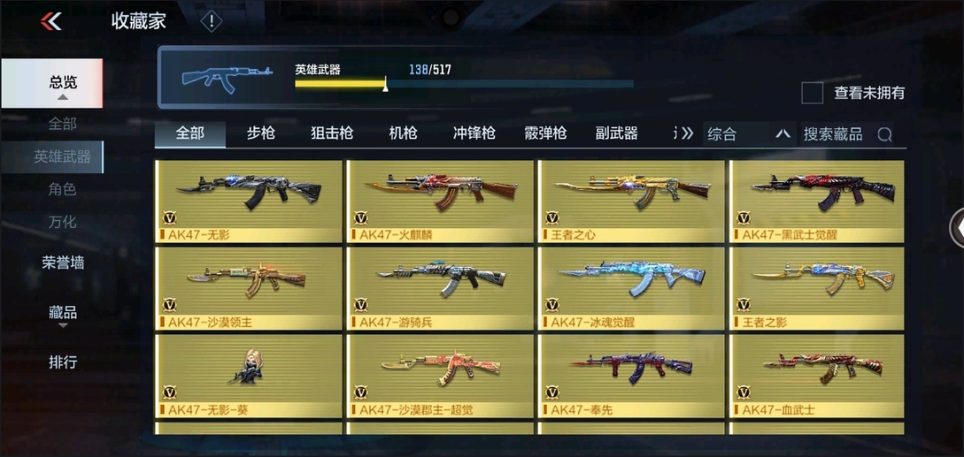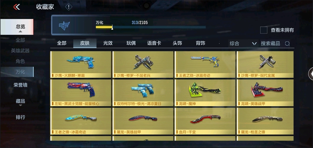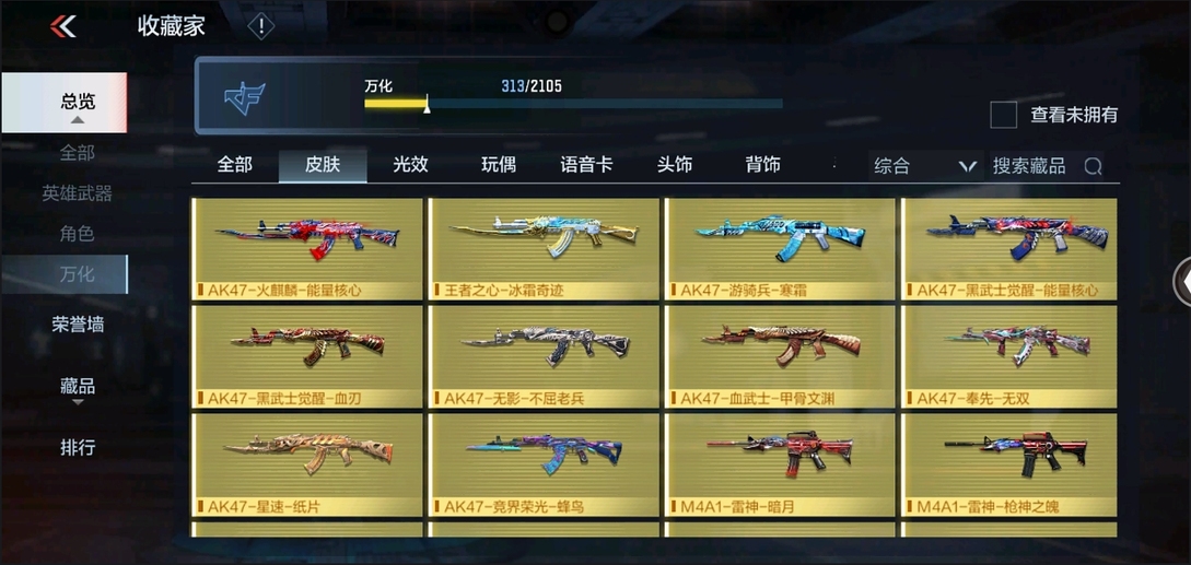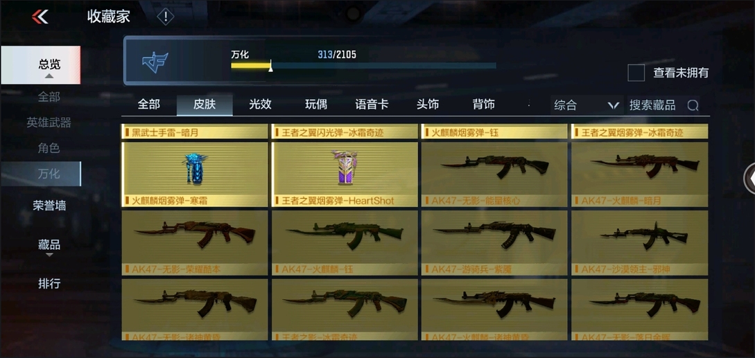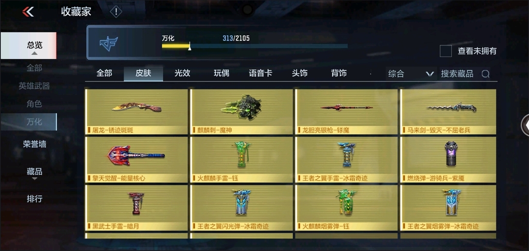 AK47-奉先,M4A1-星象,M4A1-仲達,M200-幻神,TAC-慈,MR1-龍吟驚滄海,加特林-煉獄,KSG-天蓬元帥,COP 357-墮天神,AK47-火麒麟,AK47-無影,AK47-黑武士覺醒,AK47-遊騎兵,AK47-無影-葵,M4A1-死神,M4A1-遊騎兵,M4A1-黑龍,M4A1-雷神,AK47-木蘭,巴雷特-毀滅,巴雷特-極光-運動寶貝蘭,巴雷特-極光,巴雷特-雷神,巴雷特-雷霆,9A91-死神,G36-機械紀元,81式-機械紀元,AWM-天使,98K-黑騎士,MG36-黑騎士,MK5-機械紀元,雙持斯泰爾-天使,AK47-沙漠領主,AK47-冰魂覺醒,AK47-沙漠郡主-超覺,AK47-血武士,AK47-黑鯊,M4A1-君威GS,M4A1-沙漠領主,M4A1-玫瑰精靈,M4A1-Rush-夜襲,M4A1-運輸船,M4A1-海騎士,M4A1-賽博雷神,M4A1-龍血,巴雷特-冬滅覺醒,巴雷特-槍娘,M14EBR-暗夜,SCAR-探星者,AN94-超新星,SCAR-幽暗騎士,AWM-賽博時代,AWM-天龍,SKS-美杜莎,09式狙-天神,寒霜烈龍,劉易斯-血月,湯姆遜-烈龍,加特林-堡壘,RPK-赤炎盤龍,MG3-雛鳳,地獄火,地獄烈炎,CZS2-心動次元覺醒,柯爾特-仲達,MK23-幻神,墨刃-幻神,龍膽亮銀槍,沙鷹-修羅,沙鷹-火麒麟,雙持柯爾特-極光,左輪-黑武士覺醒,改裝GLOCK-木蘭,QSZ92-天使,MK23-機械紀元,尼泊爾-機械紀元,手斧-機械迷城,尼泊爾-雷霆,麒麟刺-墮天神,百戰巾幗槍,馬來劍-毀滅,擎天覺醒,斬魔劍-天使,USP-神罰,沙鷹-天神,弒魔者,神罰戰斧,血月,屠龍,耀金雷刃,星芒,麒麟刺,唐刀-大唐榮耀,叢林匕首-慶龍覺醒,斬神刀,黑武士手雷,黑武士閃光彈,黑武士煙霧彈,火麒麟手雷,火麒麟煙霧彈,火麒麟閃光彈,燃燒彈-遊騎兵,死神手雷,死神閃光彈,死神煙霧彈