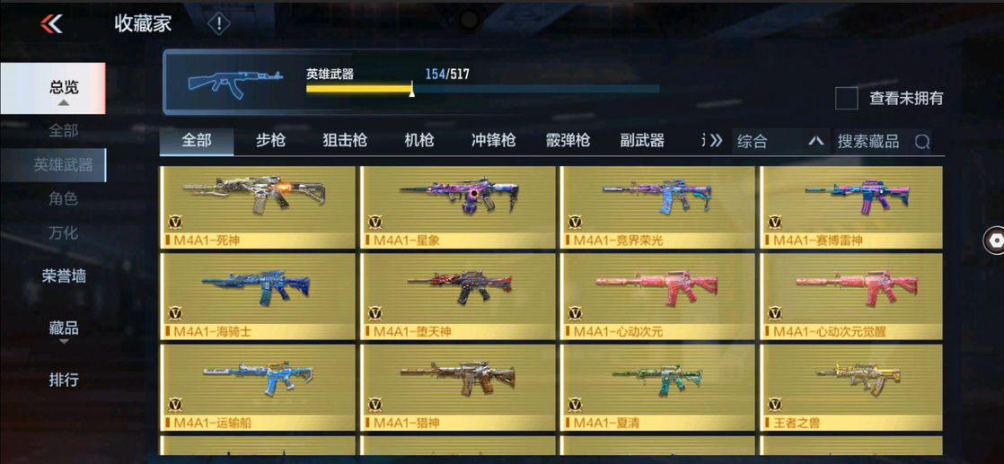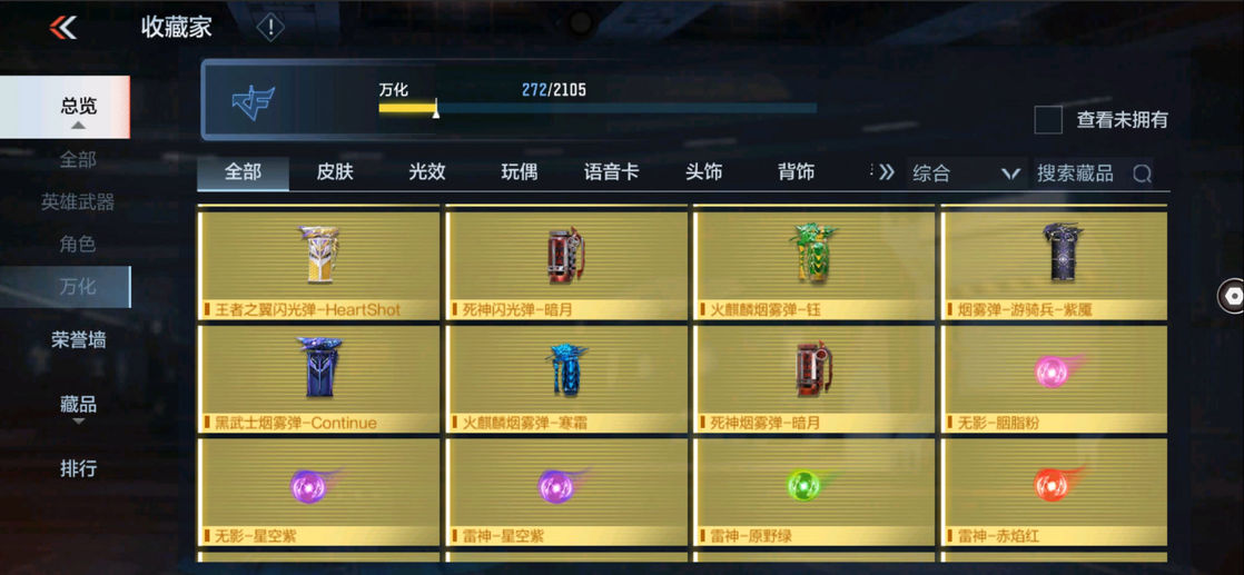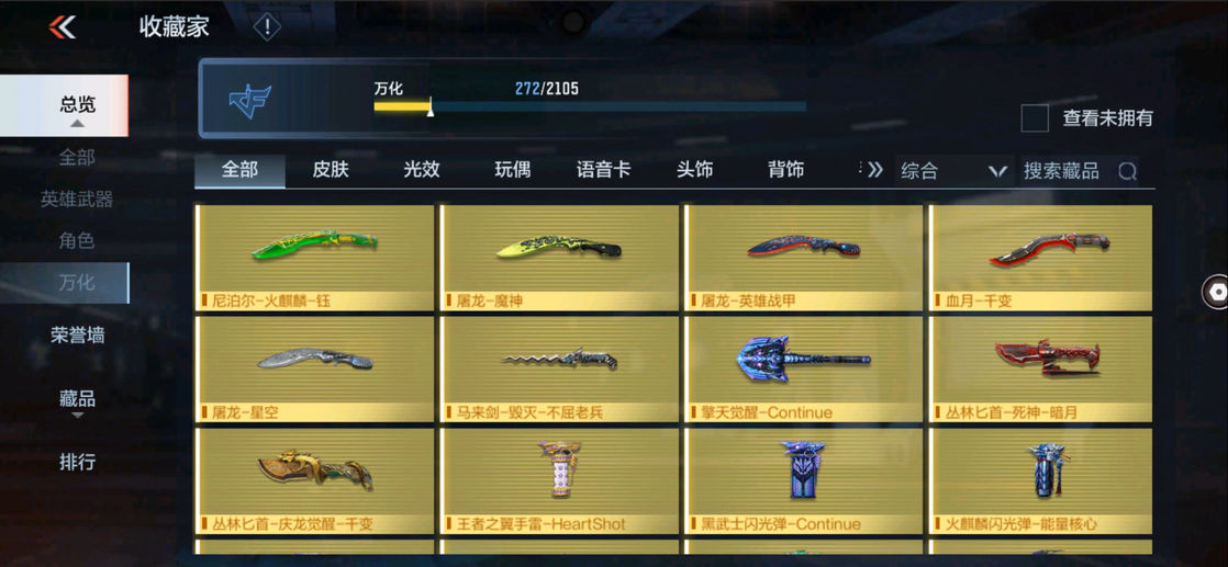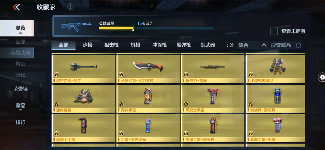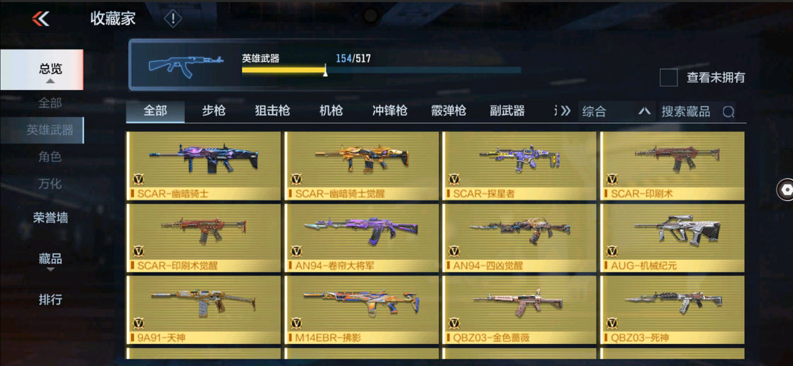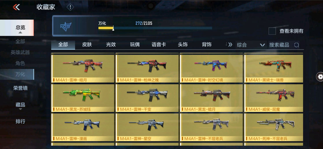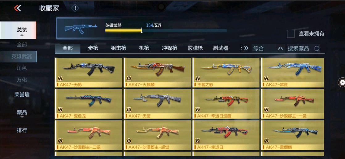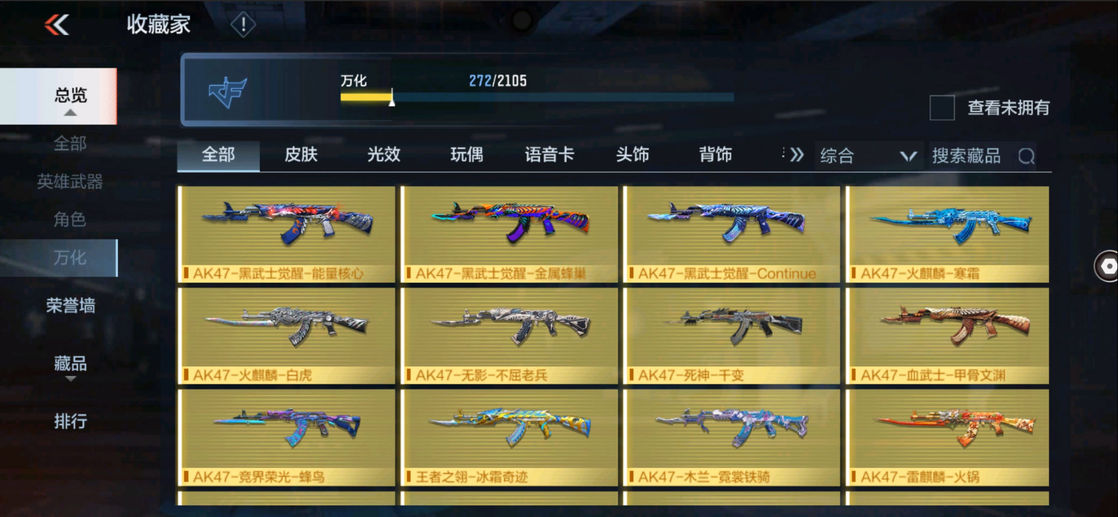 MK47-仁德,巴雷特-定軍,AK47-常勝,M4A1-星象,M200-幻神,MK47-雲舞,AN94-捲簾大將軍,CZS2-善財童子,巴雷特-金色薔薇,巴雷特-變色龍,巴雷特-極光,巴雷特-毀滅,M4A1-黑騎士,M4A1-雷神,M4A1-黑龍,AK47-木蘭,AK47-死神,AK47-無影,AK47-天使,AK47-火麒麟,AK47-變色龍,M4A1-死神,M4A1-競界榮光,M4A1-墮天神,MK47-機械紀元,G36-機械紀元,QBZ03-金色薔薇,QBZ03-死神,AUG-機械紀元,P90-雙脊龍,斯泰爾-幻獸,雙持斯泰爾-天使,M12S-雷霆,AA12-競界榮光,亡命之徒-幻獸,AK47-黑鯊,AK47-華夏傳說,AK47-春雅覺醒,AK47-心動次元覺醒,AK47-血武士,AK47-沙漠郡主-一覺,AK47-沙漠郡主-超覺,AK47-沙漠郡主-二覺,AK47-幸運日,AK47-幸運日覺醒,M4A1-心動次元,M4A1-運輸船,M4A1-海騎士,M4A1-獵神,M4A1-賽博雷神,巴雷特-冬滅覺醒,AWM-天龍,9A91-天神,SCAR-幽暗騎士,SCAR-幽暗騎士覺醒,SCAR-探星者,GM6-戰爭風雲覺醒,暗殺神,98K-血月,M200-心動次元,09式狙-天神,地獄火,地獄烈炎,嗜血金鯊,地獄烈櫻·一覺,KSG-火力競放,CZS2-心動次元覺醒,加特林-蟒蛇,加特林-堡壘,RPK-赤炎盤龍,加特林-堡壘覺醒,USP-仁德,MK23-幻神,MK23-瑜,雙管獵槍-威侯,氣手槍-煉獄,蟒蛇-奉先,雙持沙鷹-金銀雙煞,鐵鍬-孟德,墨刃-幻神,雌雄雙股劍,虛空之槌-妙才,沙鷹-修羅,沙鷹-火麒麟,MK23-雙脊龍,QSZ92-金色薔薇,MK23-機械紀元,沙鷹-幻獸,沙鷹-明目達聰,雙脊龍趾,馬來劍-毀滅,擎天覺醒,尼泊爾-雷霆,尼泊爾-火麒麟,斬神刀-雷暴,USP-神罰,蟒蛇-火力競放,雙持沙鷹-亞龍,唐刀-大唐榮耀,星芒,雙持尼泊爾-亞龍,血月,龍嘯,神罰戰斧,血陽,屠龍,迷你究極泰坦,叢林匕首-火力競放,高爆手雷-墮天神,閃光彈-墮天神,煙霧彈-墮天神,煙霧彈-雷霆,黑騎士手雷,黑騎士閃光彈,黑騎士煙霧彈,黑武士手雷,黑武士閃光彈,燃燒彈-遊騎兵,死神手雷,手雷-競界榮光