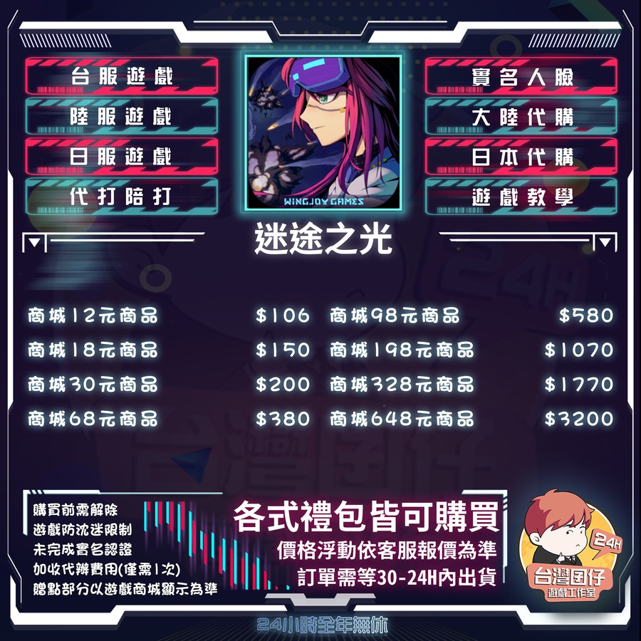 代儲【人民幣68元商品=380元】 🏆24H客服🏆現貨秒出🔥台灣囝仔🔥迷途之光陸服🔥20萬保證金