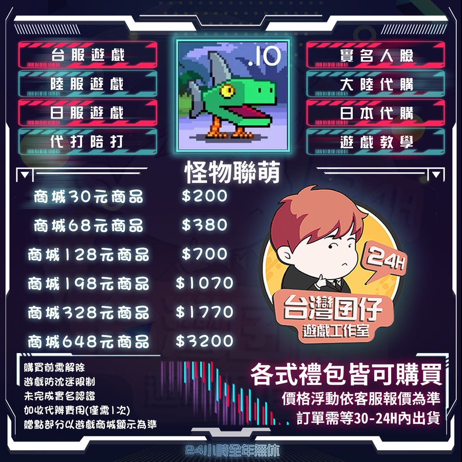 代儲【人民幣198元商品=1070元】 🏆24H客服🏆現貨秒出🔥台灣囝仔🔥怪物聯萌陸服🔥20萬保證金