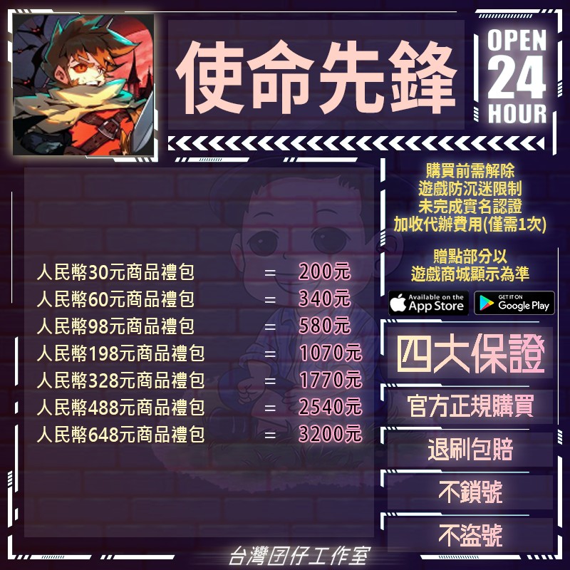 代儲【人民幣198元商品=1070元】 🏆24H客服🏆現貨秒出🔥台灣囝仔🔥使命先鋒陸服🔥20萬保證金