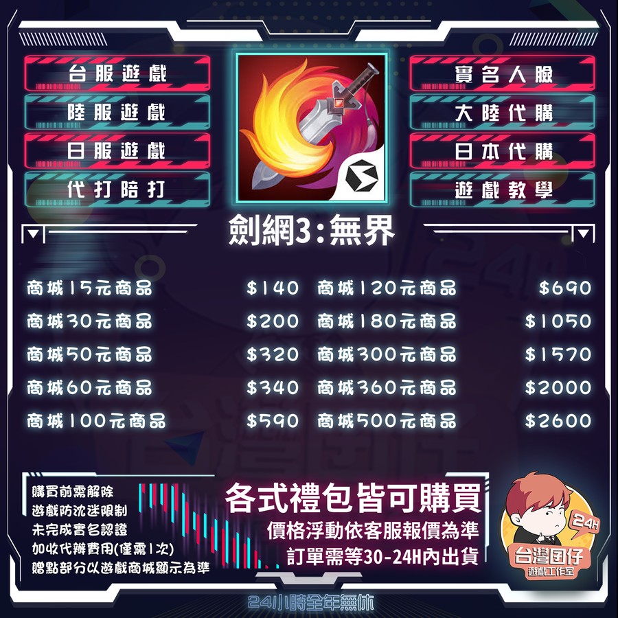 代儲【人民幣100元商品=590元】 🏆24H客服🏆現貨秒出🔥台灣囝仔🔥劍網3無界陸服🔥20萬保證金